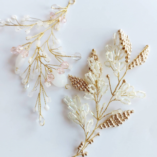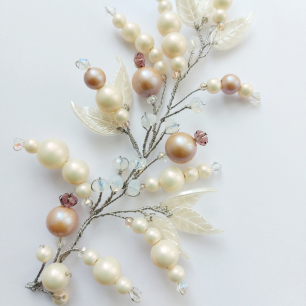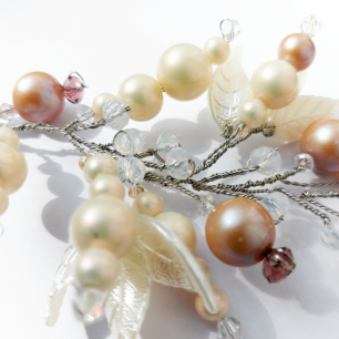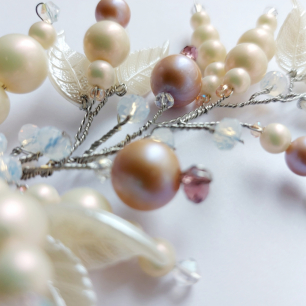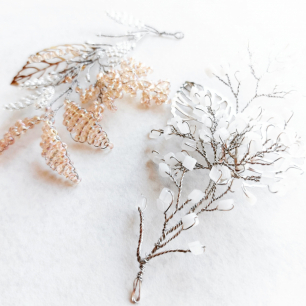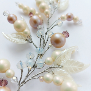 Но если невеста выбирает пышный подвенечный наряд, стоит ограничиться тонкими и деликатными украшениями. Так, к примеру, диадема подчеркнёт величественность и роскошность невесты. Также можно подобрать украшения для волос, например, гребешки или заколки с переливающимися кристаллами или полудрагоценными камнями. Правильно подобранные, они подчеркнут все достоинства свадебной причёски и не перегрузят образ.