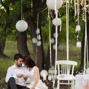 Если вы любите мастерить что-то своими руками, то можете договориться с оформителем, что частично сами подготовите атрибутику. Например, самостоятельно вы можете сделать бонбоньерки или фотобутофорию. В данном случае вы получаете сразу два плюса: во-первых, вносите в свадебное торжество частичку своей души, а во-вторых, экономите на работе декоратора, что, как ни крути, всегда кстати.